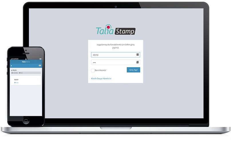 Kullanıcı dostu bir işleyişe sahip olan uygulama ile bir ürünü damgalamak oldukça basit. Zeyveli, TaliaStamp ile gerçekleştirilen damgalama sürecinin aşamalarını şöyle özetliyor; “Bilgisayarınıza bağlı bir disk gibi çalışan bir sistemi mevcut. Bu sistemde hesabı olan biri, kendi deposuna bir dosya koyduğu anda başka bir işleme gerek kalmadan bu depoya konulan dosya otomatik olarak zaman damgasıyla damgalanıyor. Yani oldukça basitleştirilmiş bir kullanımı var. Depoda hem dosyanın kendisi hem de bu dosyaya ait damga saklanıyor. Bu damga sayesinde bir dosyanın ne zaman kim tarafında oluşturulduğu ve sahip olunduğu anlaşılabiliyor. Hukuki bir sorun çıktığında bu dosyayı ve damgasını mahkemeye vermek, bu dosyanın o halinin, o tarihte kişinin kendisinde olduğunu ispatlamış oluyor.”