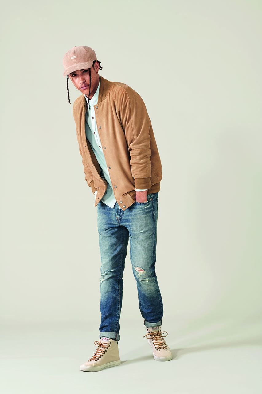Bu sezonun erkek giyim koleksiyonu günümüzde moda dünyasının çok önemli bir parçası haline gelen sokak stili etkilerini geliştirmeye devam ediyor. Bu durum esas olarak siyah ve indigo denimden hibrit Trucker ceket gibi Levi’s® ikonlarının abartılması ve deforme edilmesi şeklinde ortaya çıkıyor. Renkli, grafik desenli kapüşonlu sweatshirt’ler ve tişörtler, cesur desenli Cubano gömlekler ve yanları şeritli 501® jean’ler sayesinde de Unbasic stili zenginleşiyor.