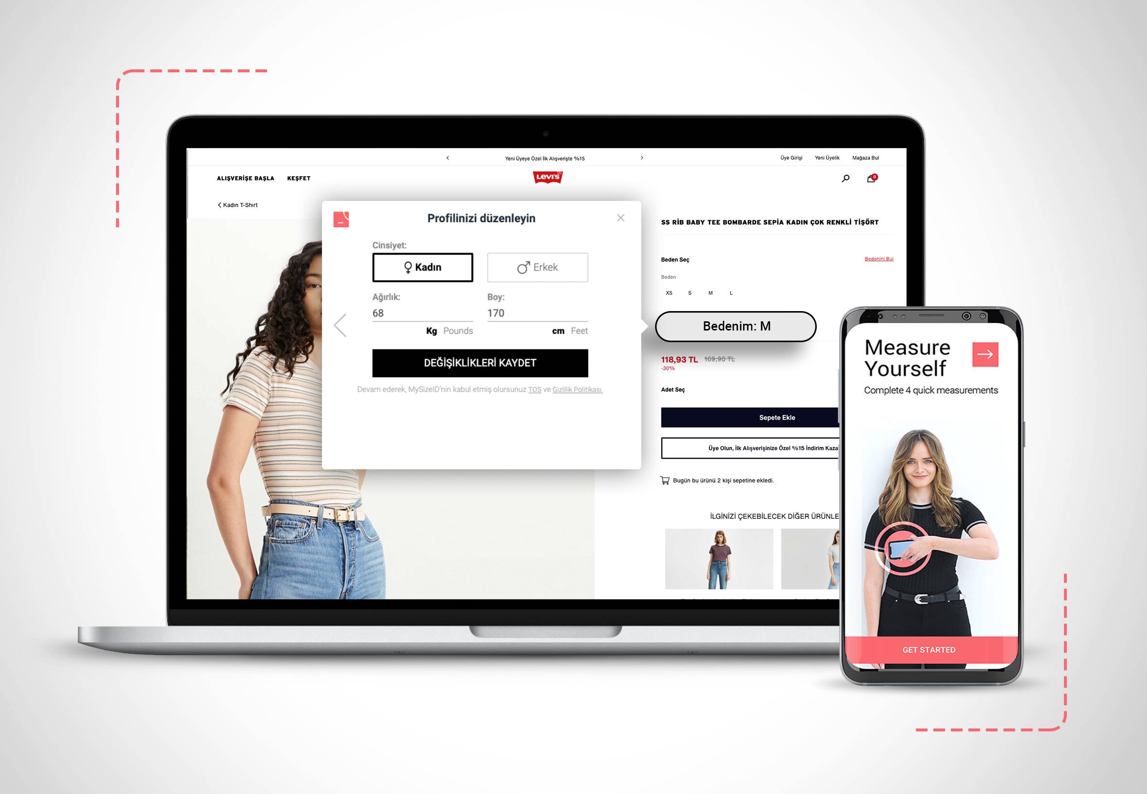 MySizeID’nin ölçümleme teknolojisi, çevrimiçi alışveriş yapanlara en uygun beden önerisini sunmak için patentli algoritmasını Levi’s®’ın beden çizelgeleri ve ürün tablosu verileriyle eşleştirerek kullanıyor. Kullanımı kolay, ölç ve satın al uygulaması, Levi’s®’ın online alışveriş sitesine sorunsuz bir şekilde entegre edildiğinden beri çevrimiçi alışveriş deneyimini iyileştiriyor, müşterilerinin markaya olan bağlılık ve güvenlerini artırıyor.