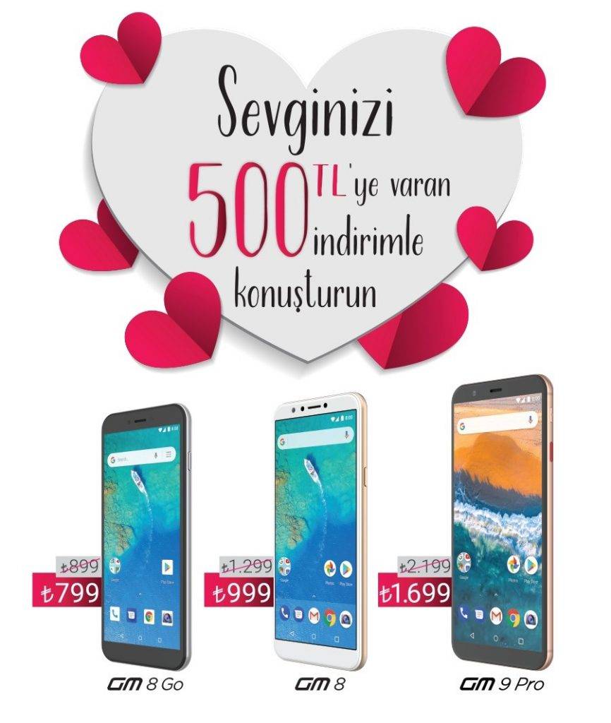 14 Şubat’ta sevdiklerinizi mutlu edecek en güzel hediyelerden biri Google’ın ‘Android Go’ versiyonunun dünyadaki ilk ürünü olan GM 8 Go olacak. Sadeleştirilmiş kullanımı kolay uygulamalar ile akıllı telefona ilk adım konseptinde pazara sunulan GM 8 Go modeli, 3500 mAh pili, az enerji tüketimi ile ortalamanın çok üstünde bekleme süresi ve başarılı kamerası ile dikkat çekiyor. GM 8 Go’yu sevdiğine armağan etmek isteyen kullanıcılar telefona 899 TL yerine 799 TL’ye sahip olabilecekler.