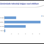 “Günümüzde teknoloji, doğayı-dünyayı nasıl etkiliyor?” sorusu ile bugünün de sorgulandığı araştırmada; alınan yanıtlar şuan ulaşılan seviyeden çok da memnun olunmadığını ortaya koyuyor. İlgili soruya yüzde 51,46 oranında ‘Yeteri kadar faydanılmıyor’ yanıtı verilirken, yüzde 30,42 oranında ‘Zarar veriyor’, yüzde 16,83 oranında ‘Fayda sağlıyor’ cevabı alındı. ‘Etkisi yok’ diyenlerin oranı ise yüzde 1,29.