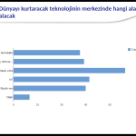 “Dünyayı kurtaracak teknolojinin merkezinde sizce hangi alan/alanlar yer alacak?” sorusuna yüzde 69,58 ile en yüksek oranda verilen yanıt ‘Yapay Zeka’ oldu. Ardından ‘Iot (%47,25)’, ‘Büyük veri (%44,98)’, ‘Robotik süreç otomasyonu (%44,01)’, ‘Analitik teknolojiler (% 41,42)’ ve ‘Diğer (%10,3)’ yanıtları alındı.