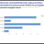 Teknolojinin merkezinde ‘Yapay Zeka’ yer alacak görüşünün alındığı araştırmada, “Ülkemizde sürdürülebilirliğe katkı sağlayacak bilişim teknolojilerinin hızlanmasında Türkiye’nin yol haritası, öncelikli eylemleri neler olmalı?” sorusuna bir önceki soruyu destekleyen nitelikte yüzde 76,05 oranında ‘Yapay zeka yatırımının artması’ cevabı alındı. Yüzde 67,31 ile ‘Milli ve yerli teknolojilere ağırlık vermek’ gerektiği belirtilirken, ‘5/6G’ye hızlı geçiş’ diyenlerin oranı yüzde 37,86 oldu.