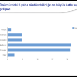 “Önümüzdeki 5 yılda sürdürülebilirliğe en büyük katkı sağlayacak gelişme” ise yüzde 38,19 ile ‘Tam dijitalleşme’ olarak belirtildi. Yüzde 37,86 ile ikinci sırada yer alan ‘Elektrikli Araçlar’ cevabını, ‘Kuantum teknolojileri (%8,74)’ ve ‘Blockchain (%8,74)’ takip etti.